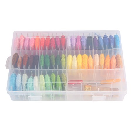 - DMC 실 정리함: 다양한 색상의 실을 깔끔하게 정리하고 보관할 수 있는 필수 아이템입니다. 칸막이로 분리되어 있어 색상별로 실을 정리하기 용이하며, 먼지나 햇빛으로부터 실을 보호해줍니다. 투명한 재질로 제작되어 실 색상을 쉽게 확인할 수 있으며, 휴대가 간편합니다. 실 종류별로 정리하면 더욱 편리하게 사용할 수 있습니다. 🧵 (약 115자)